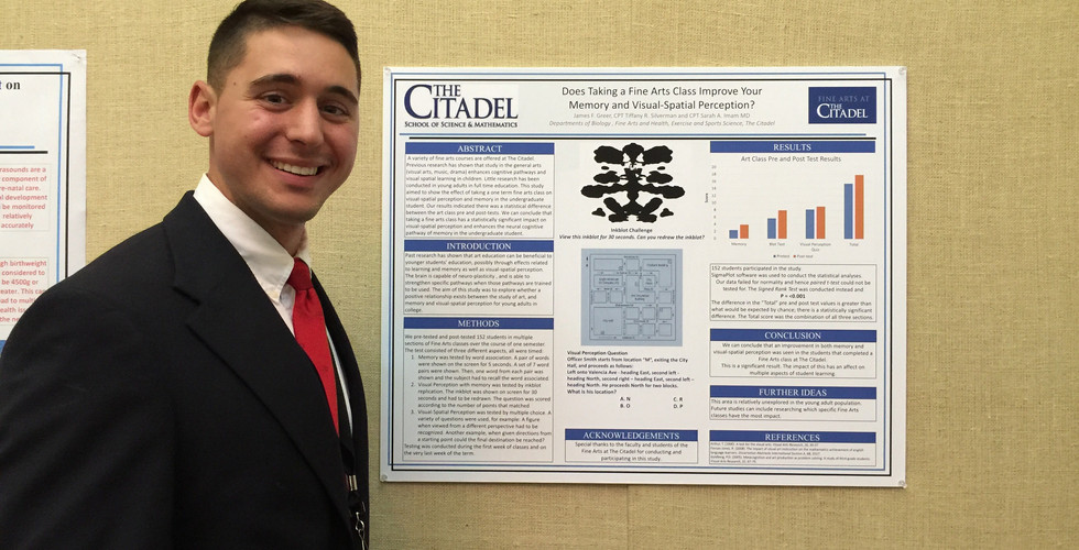 SURF 2017 occurred on the Wofford College Campus on October 27 and 28, 2017. There were 15 undergraduate students who presented their research. The Citadel had 3 oral presentations and 9 presentations and 2 art exhibits. AMAZING outcomes from all students. Kudos to these Citadel students - you made us proud: